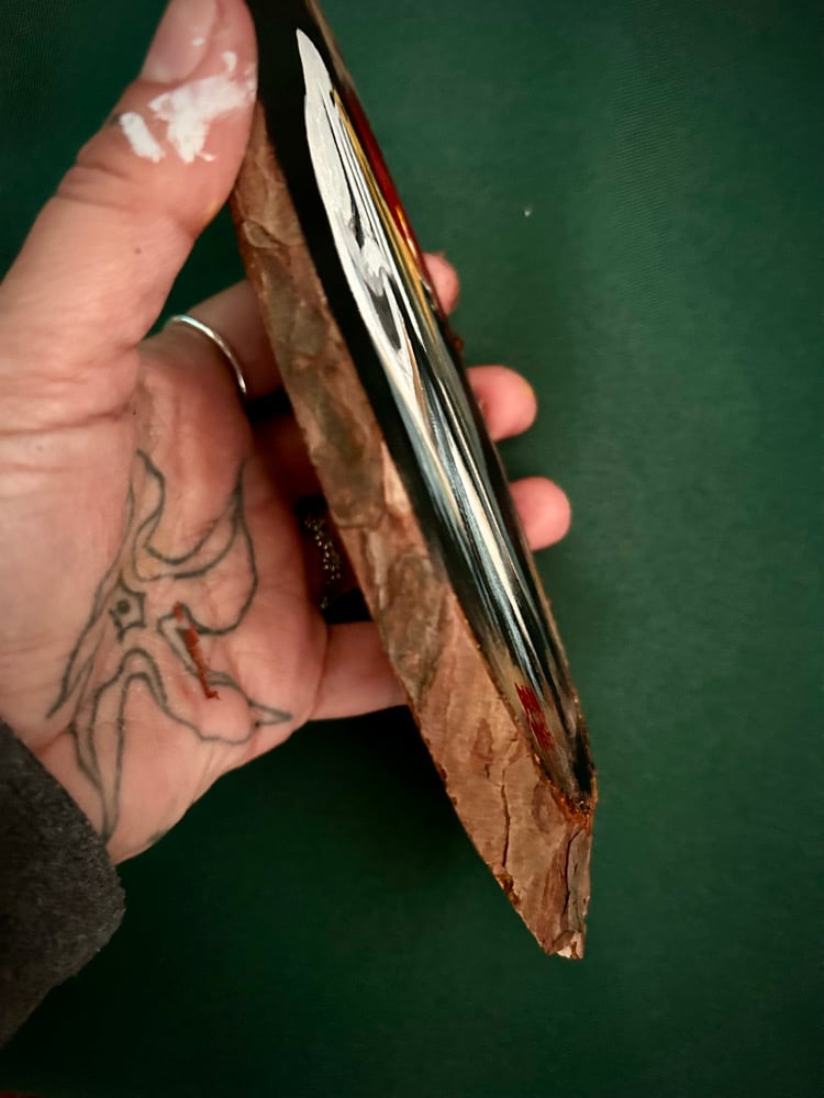 Acrílico sobre rodaja de madera de pino.